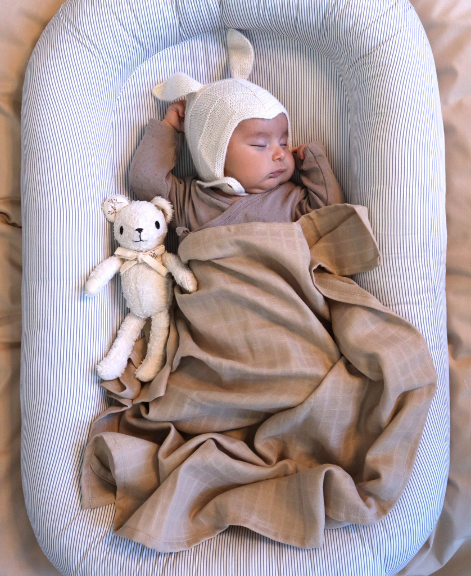 Bei der Auswahl von Materialien für Babynestchen steht die Gesundheit und das Wohlbefinden des Babys an erster Stelle. Hier gelten ähnliche Tipps wie bei dem Kauf von Nestchen: Es ist äusserst wichtig, hypoallergene, atmungsaktive und hautfreundliche Stoffe zu verwenden, um mögliche Allergien oder Irritationen der empfindlichen Babyhaut zu vermeiden. Natürliche Materialien wie Bio-Baumwolle oder Bambusfasern eignen sich hervorragend für Babynester, da sie weich und sanft zur Haut sind, Feuchtigkeit ableiten und eine gute Luftzirkulation ermöglichen. Diese Eigenschaften tragen dazu bei, dass das Baby bequem und sicher schlafen kann, ohne übermässigem Schwitzen oder Überhitzung ausgesetzt zu sein. Unsere Babynest sind alle aus hautfreundlichen Stoffen, die gut für die Babyhaut sind. Hauptsächlich aus kontrollierter Bio-Baumwolle, GOTS zertifiziert.