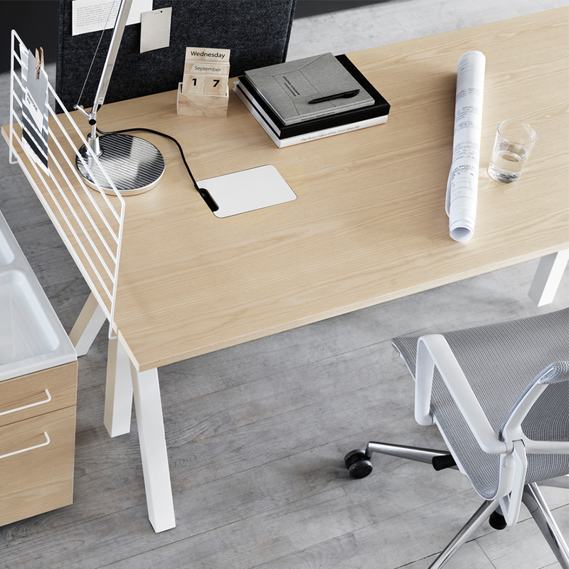 Dank seinem schlichten, zeitlosen Design kann dazu (fast) jeder Stuhl kombiniert werden und damit ein Arbeitsplatz im eigenen Stil geschaffen werden.