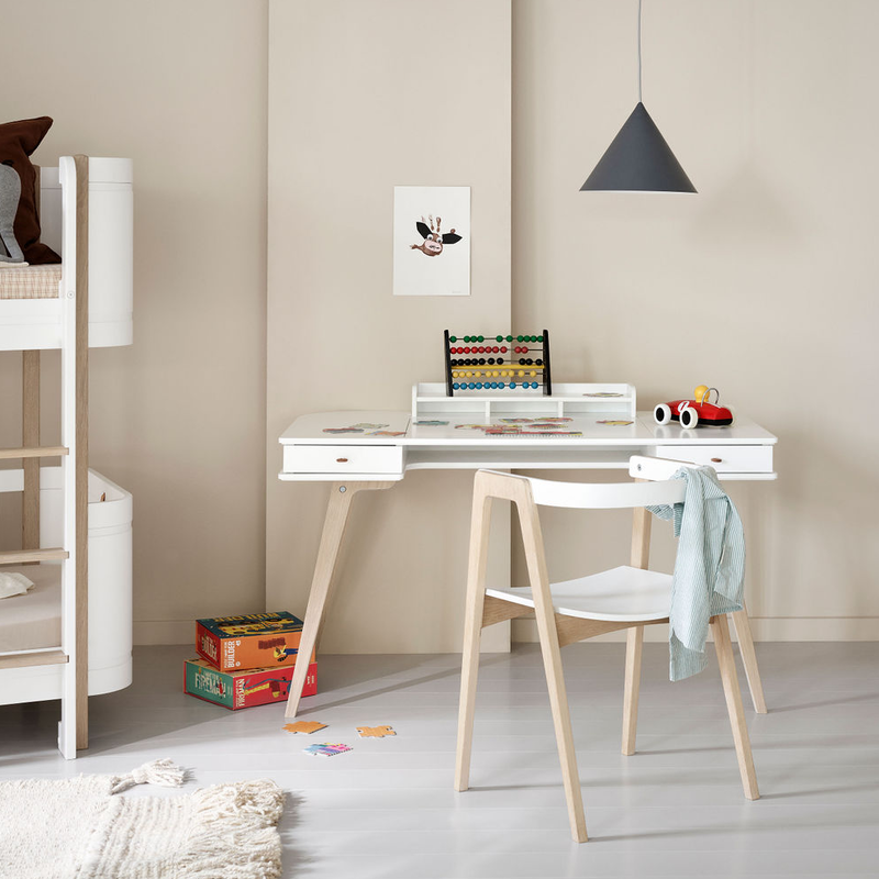 Der Schreibtisch "Wood" von Oliver Furniture, aus massivem FSC - Zertifizierten Eichen- und Birkenholz, ist mit seiner harmonischen Form und zahlreichen Funktionen ideal für ein Kinder- oder Jugendzimmer und fügt sich durch sein schlichtes, skandinavisches Design in jedes Zimmer ein. Passend dazu kommt ein Stuhl, der mit deinem Kind mitwächst.