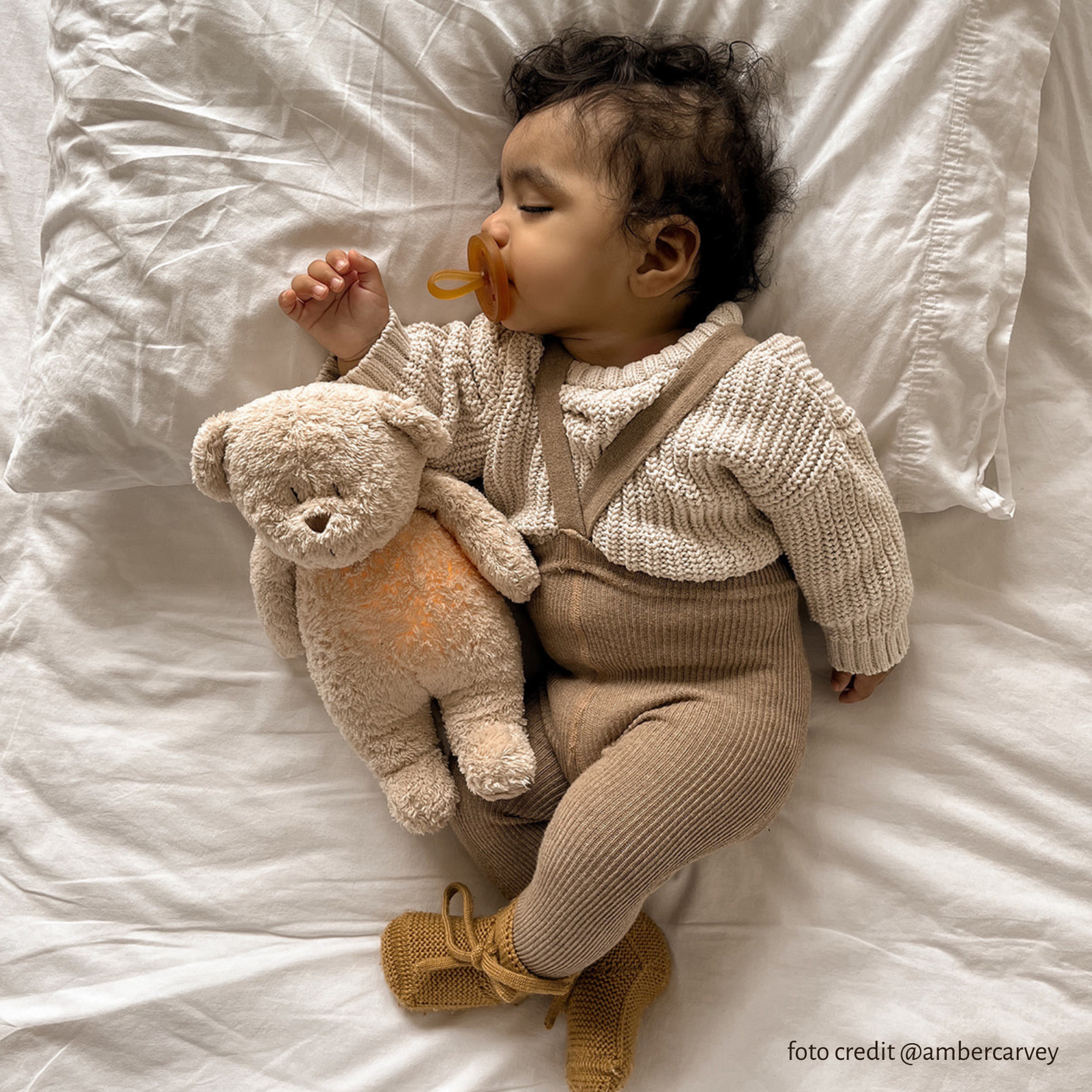 Spieluhren sind nicht nur klanglich beruhigend, sondern oft auch ein emotionaler Anker für das Baby. Die vertraute Melodie wirkt einschläfernd, gerade wenn sie Teil eines festen Abendrituals ist. Hochwertige Spieluhren aus Naturmaterialien oder in Form eines Kuscheltiers bieten zudem haptischen Komfort und begleiten viele Kinder bis ins Kleinkindalter.