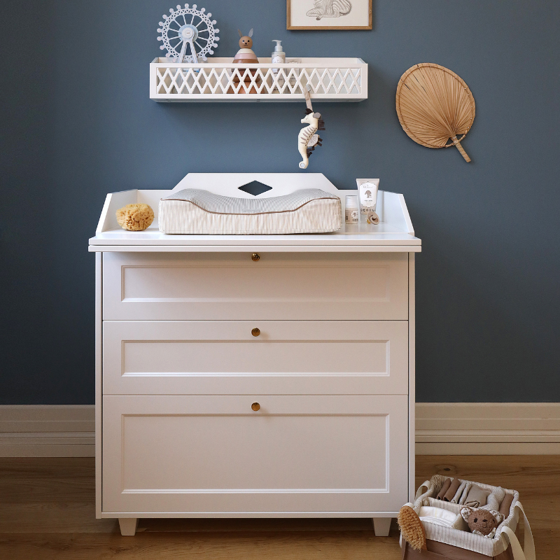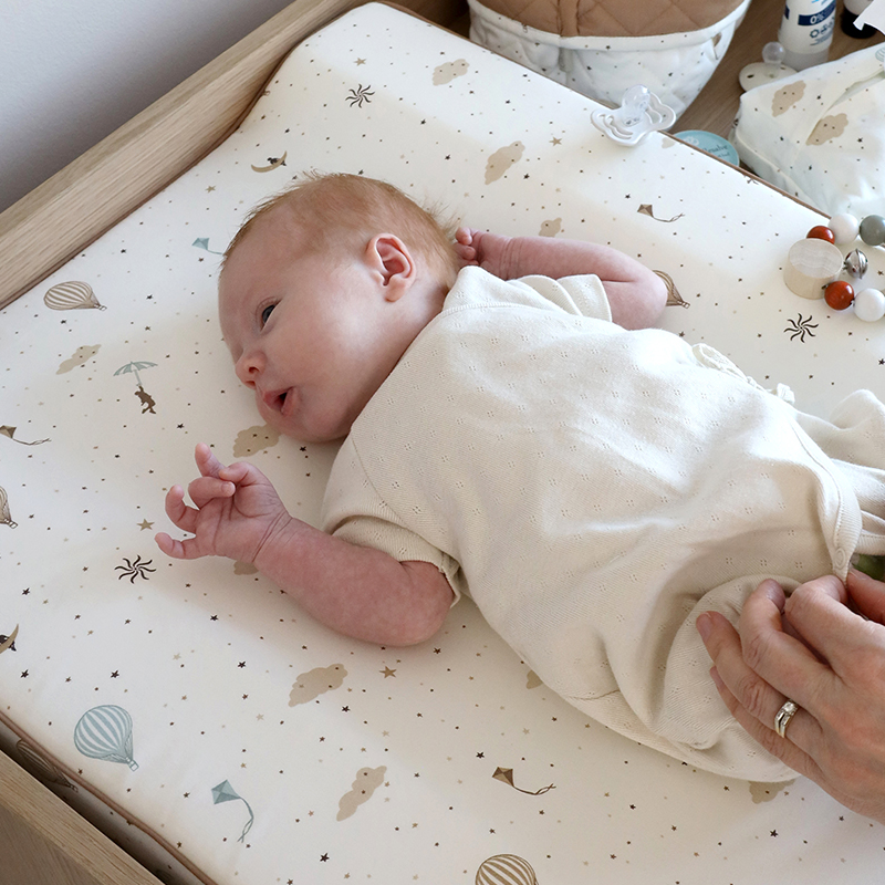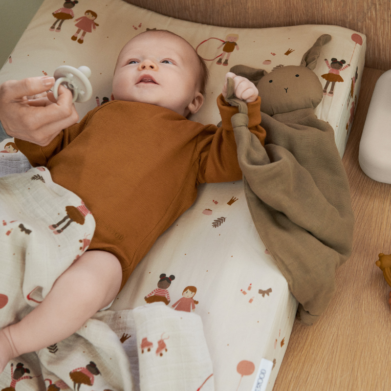 Mulltücher, Swaddlesund Waschlappen sind vielseitige Begleiter am Wickeltisch. Mulltücher eignen sich ideal zum Abwischen von kleinen Verschmutzungen oder als praktische Spucktücher, während Swaddles, meist etwas grösser als Mulltücher, daneben auch guten Sichtschutz beim Stillen in der Öffentlichkeit bieten und eine sichere Wickeltechnik ermöglichen, falls du dein Baby Pucken möchtest, einer speziellen Wickeltechnik, bei dem dein Baby sehr eng in ein Tuch eingewickelt wird. Waschlappen bieten eine sanfte Reinigung für das Gesicht und den Körper des Babys. Diese praktischen Helfer sind unverzichtbar für eine hygienische und komfortable Wickelroutine. Tipp: Montiere am Wickeltisch eine Wärmelampe, sie hält dein nacktes Baby bei der Babypflege wohlig warm und erleichtert so das Pflegen und Windeln wechseln. Und halte immer ein Pack Feuchttücher bereit, wenn es mal schnell und hygienisch sein muss.