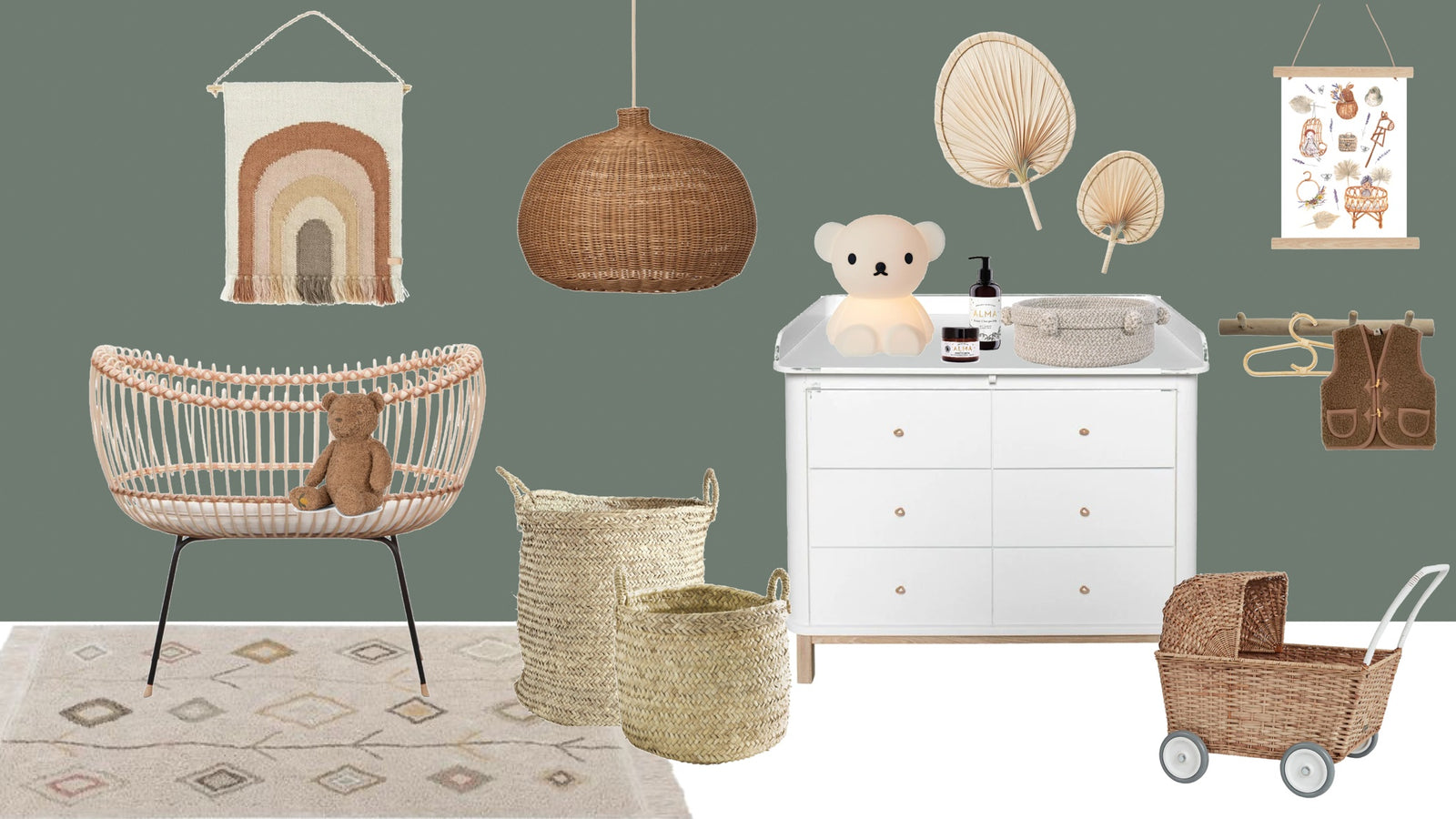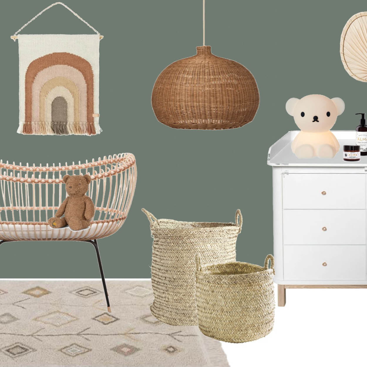 Die Kombination mit warmen Holztönen und verschiedenen Beige- und Grüntönen verleihen deinem Babyzimmer einen wunderschönen, natürlichen Look. Das schöne Bermbach Stubenbett LOLA aus Rattan mit seinen runden Formen ist einfach einzigartig. Die Oliver Furniture Wickelkommode Wood mit abnehmbarer Wickelplatte ist nach der Babyzeit auch als Kommode verwendbar.