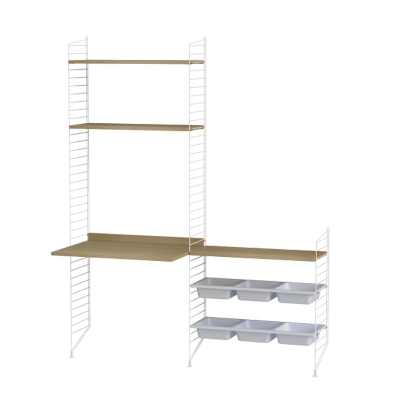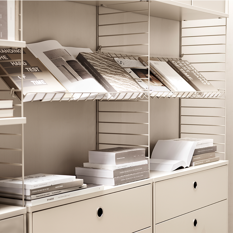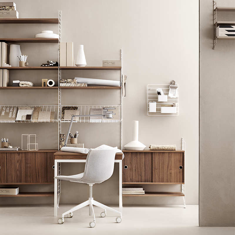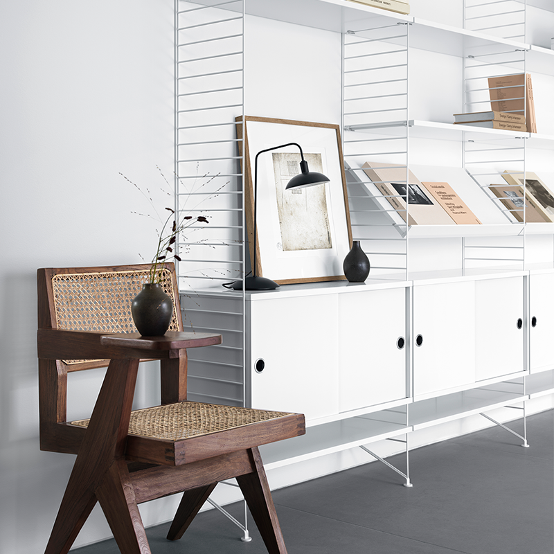 Mit dem modularen Regalsystem String System kannst du dein Traumregal individuell zusammenstellen. Die Regalsysteme bestehen aus verschiedenen Elementen wie Wandschienen, Regalböden und Schrankelemente, die individuell angeordnet werden können. String System bietet flexible Lösungen für Wohn-, Arbeitsbereiche und das Kinderzimmer mit zeitlosem ästhetischem Appeal.
