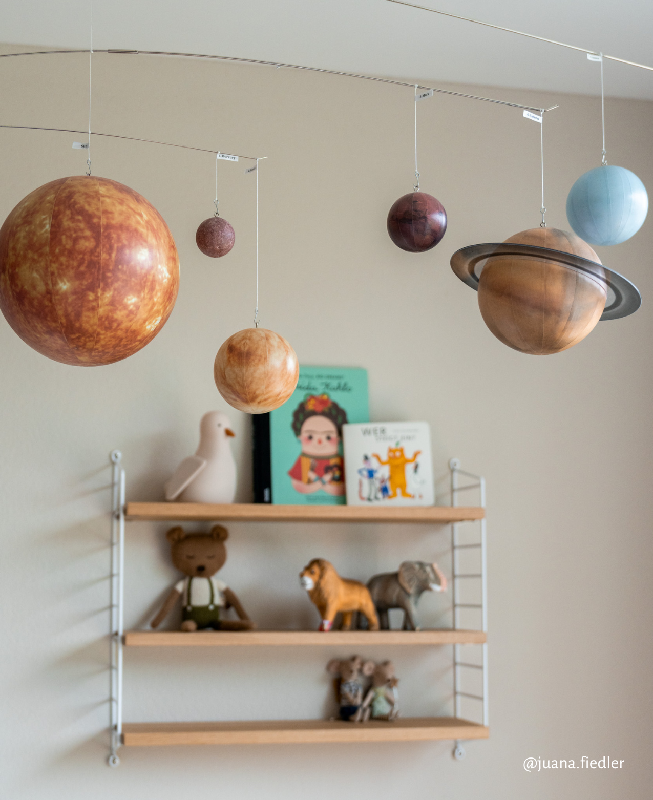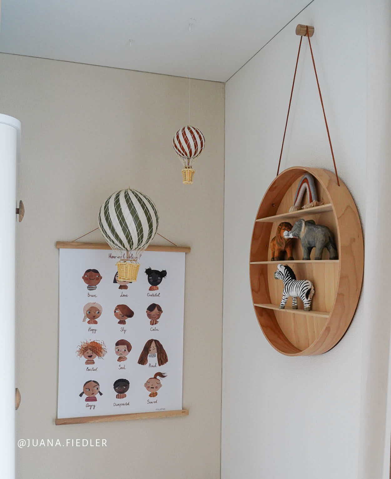 Dekorative Poster, Mobile oder Wandregale sind eine tolle Ergänzung für jedes Kinderzimmer und sorgen für eine liebevolle Atmosphäre.