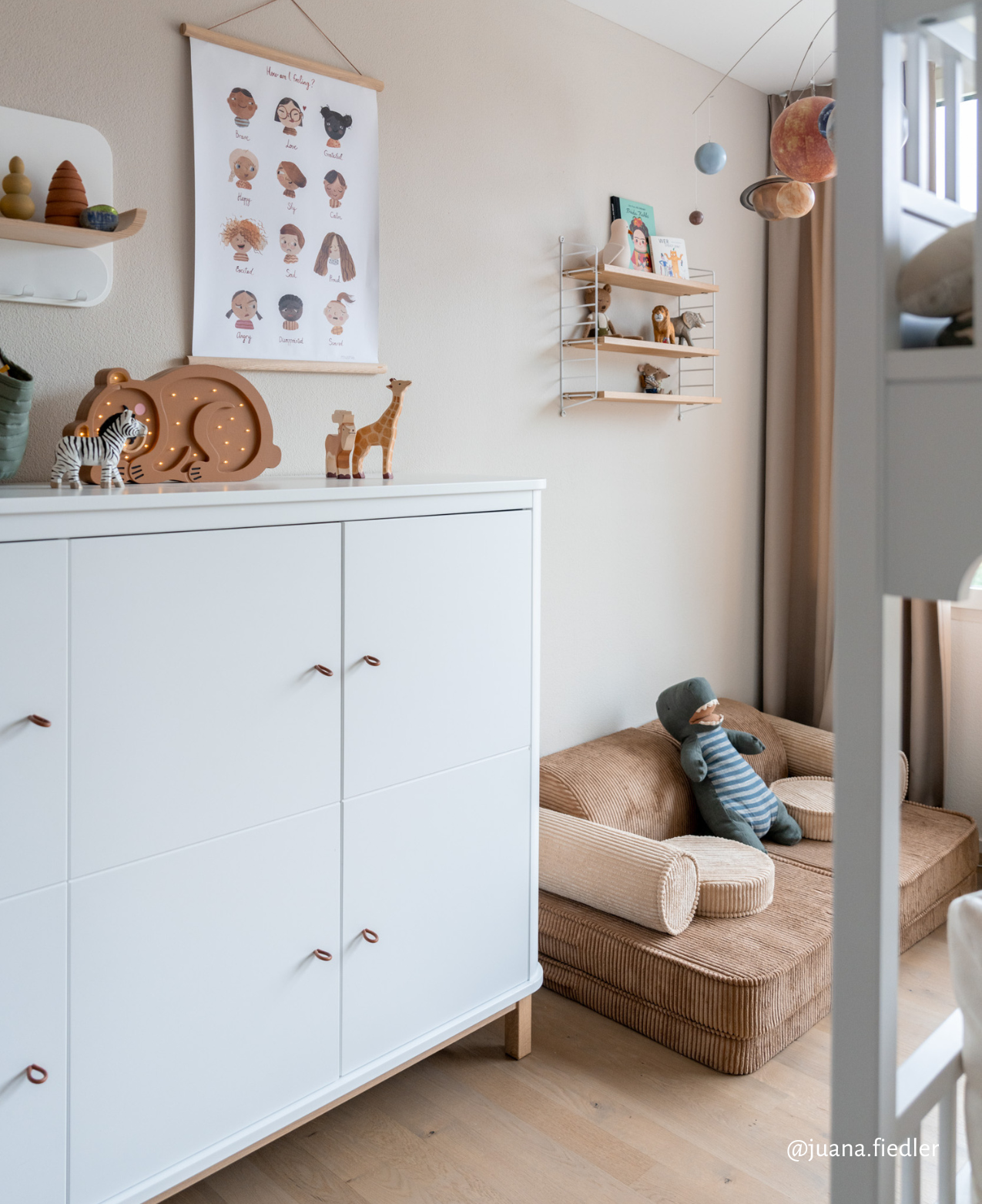 Juanas Jungs teilen sich auch im neuen Heim ein Zimmer – diesmal ein kleines Kinderzimmer, bei dem wir darauf geachtet haben, dass beide Jungs auf ihre Kosten kommen. Die Möbel von Oliver Furniture, die bereits im alten Zuhause ihren Platz hatten, wurden beim Umzug mitgenommen und im neuen Zimmer liebevoll integriert. Entdecke unser neu gestaltetes Geschwisterzimmer und lass dich zum Nachstylen inspirieren!