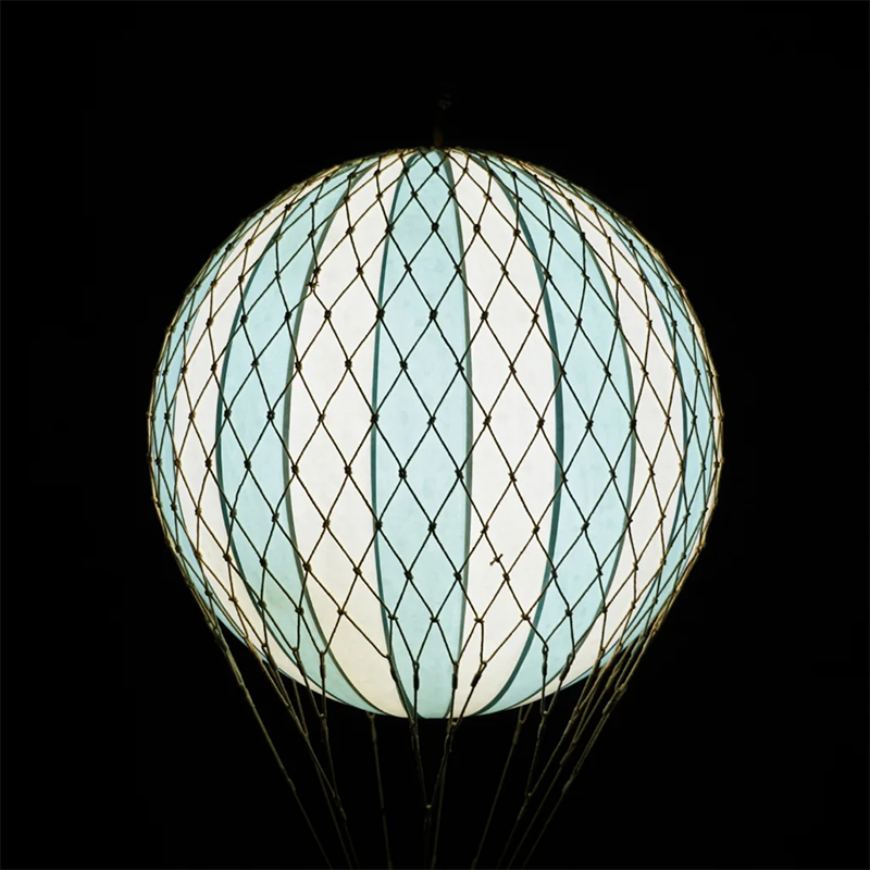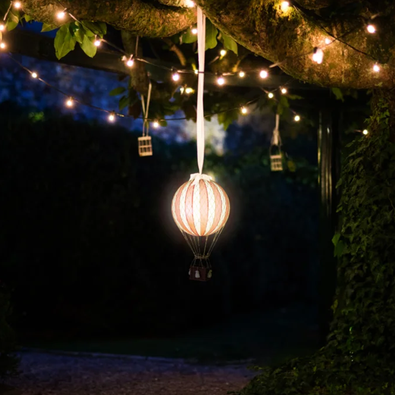 Der leuchtende LED-Heissluftballon mit sanften rosa Streifen von Authentic Models bringt eine magische Atmosphäre ins Kinderzimmer.
