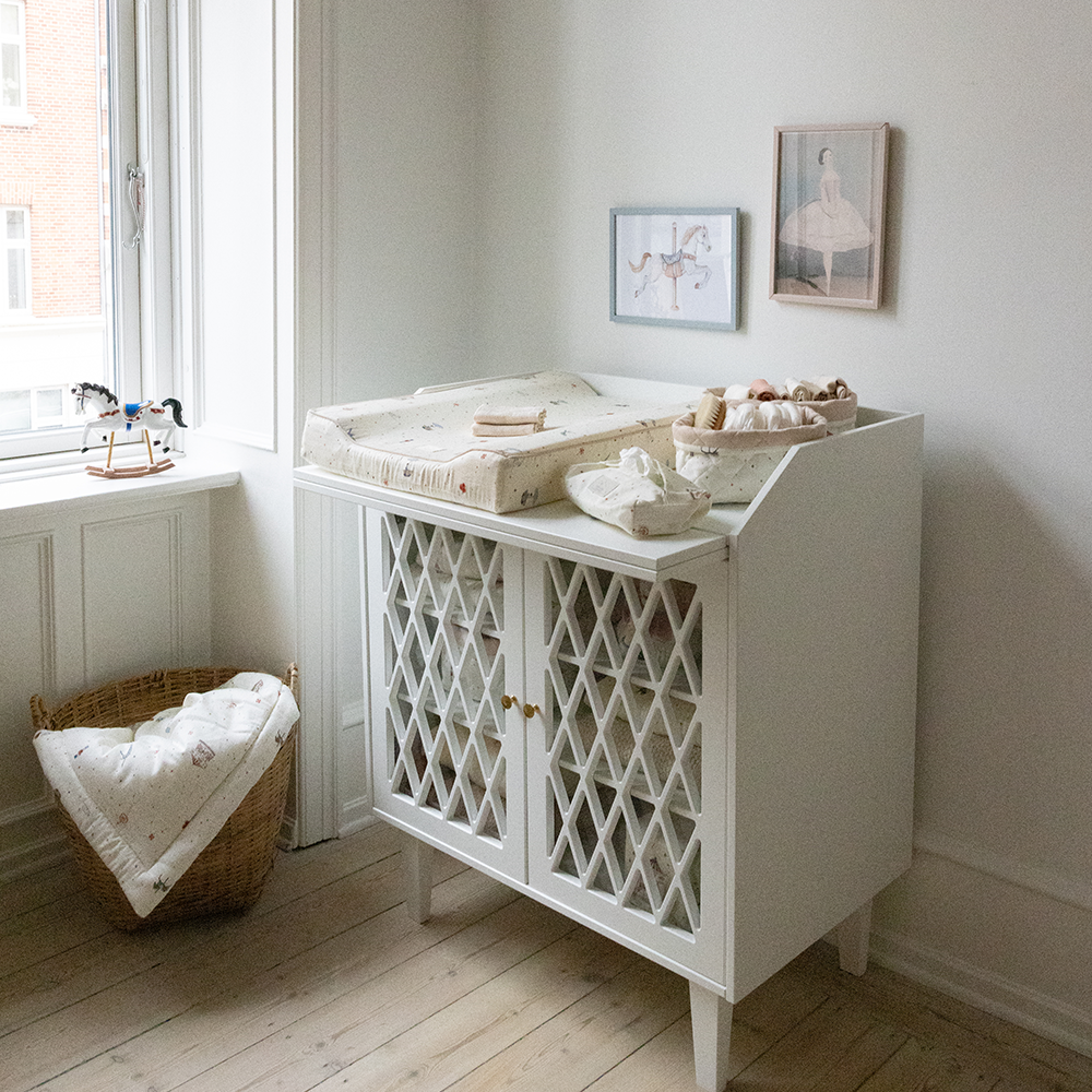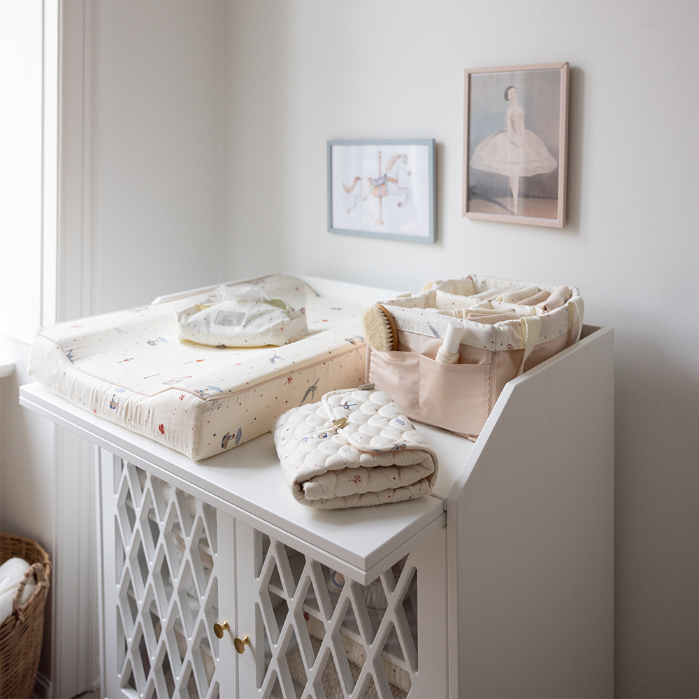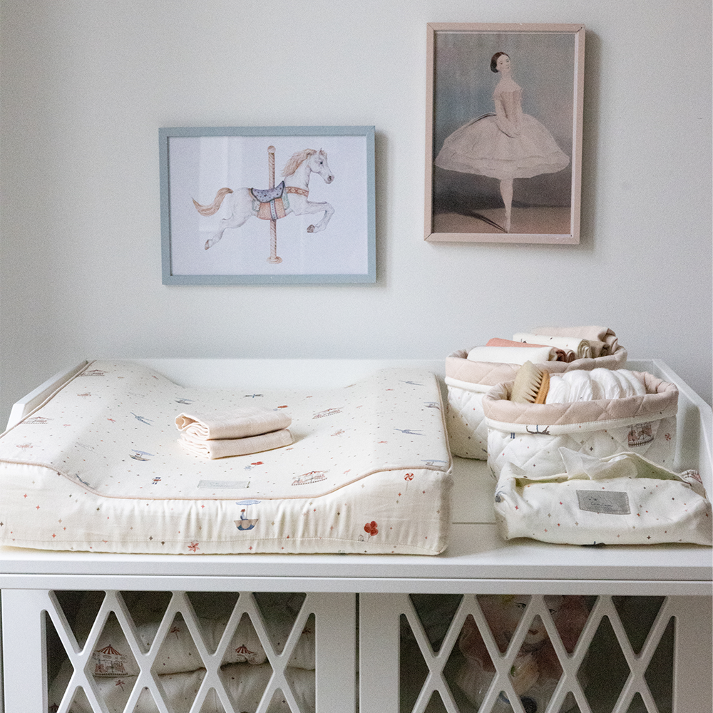 Die hübsche Wickelunterlage mit zartem Print von Cam Cam mit hohen Kanten bietet deinem Baby ein angenehmes Wickelerlebnis und eine gute Liegeposition. Das Kissen besteht aus kaltgepresstem Schaum und besitzt einen abnehmbaren und waschbaren Bezug, welcher eine praktische schmutz- und wasserabweisende Beschichtung hat. Um das Waschen des Bezugs zu erleichtern, verfügt das Kissen innen über einen weichen Futterstoff, was ein einfaches Abnehmen und Anbringen des Bezugs ermöglicht.