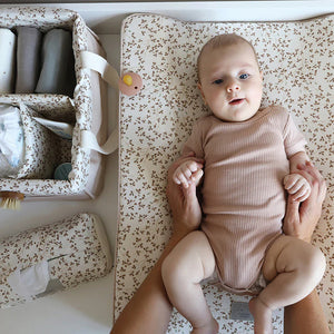Dieser Windelkorb der dänischen Marke Cam Cam ist eine tolle Lösung zur Aufbewahrung von Windeln oder kleineren Sachen auf dem Wickeltisch. Der Korb bestehen aus OCS-zertifizierter Bio-Baumwolle und kommt in schönen Farben und Prints daher.