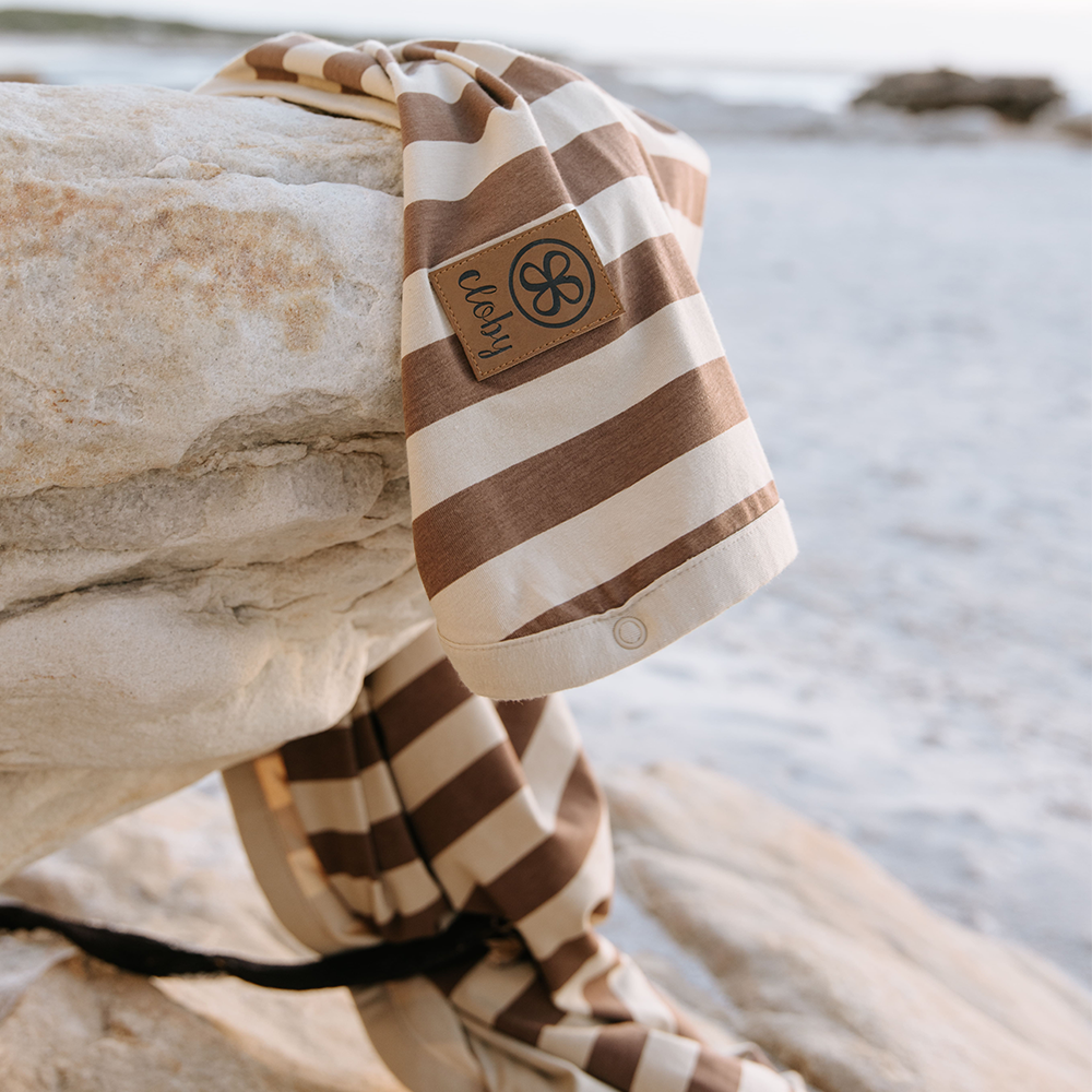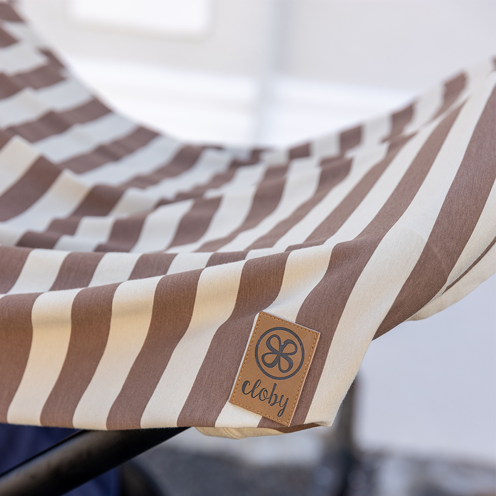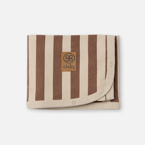 Die ultrasofte UV-Decke von Cloby in Peanut/Sandy Stripe bietet deinem Kind einen UPF 50+ Schutz.