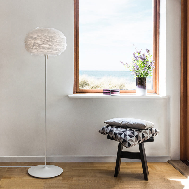 Jede einzelne Feder wird bei der Leuchte sorgfältig mit der Hand aufgebracht. Das äusserst fluffige Kleid wird innen von einem Papierschirm getragen. Durch die Federn gedämpft, erstrahlt die EOS Leuchte in einem warmen, indirekten Licht. Damit lässt sich die Leuchte besonders gut im Kinderzimmer einsetzten - dort schafft die Vita Leuchte eine gemütliche und atmosphärische Stimmung.
