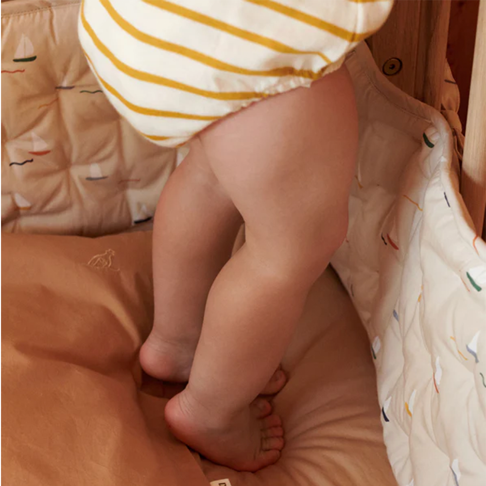 Mit dem weichen Dear April Bettnestchen schaffst du eine gemütliche und sichere Schlafumgebung für dein Kleines. Das Nestchen lässt sich mit den Bändern einfach am an den Gitterstäben befestigen und reicht ca. um die Hälfte des Babybettes, damit eine optimale Belüftung für dein Baby gewährleistet ist.