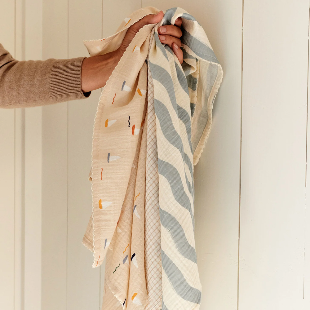 Die praktischen Musselintücher von Dear April werden aus weichstem 2-lagigen Musselinbaumwollstoff hergestellt und mit einem gehäkelten Rand verziert, was sie besonders angenehm und zart macht. Vielseitig einsetzbar, werden die Mulltücher schnell zu einem unverzichtbaren Begleiter in deinem Alltag mit Baby: Sie sind perfekt zum Stillen, als kuschelige Decke oder beim Wickeln. Die Tücher sind bereits vorgewaschen, damit sie besonders kuschelig sind. Bei jedem weiteren Waschen werden sie sogar noch weicher.