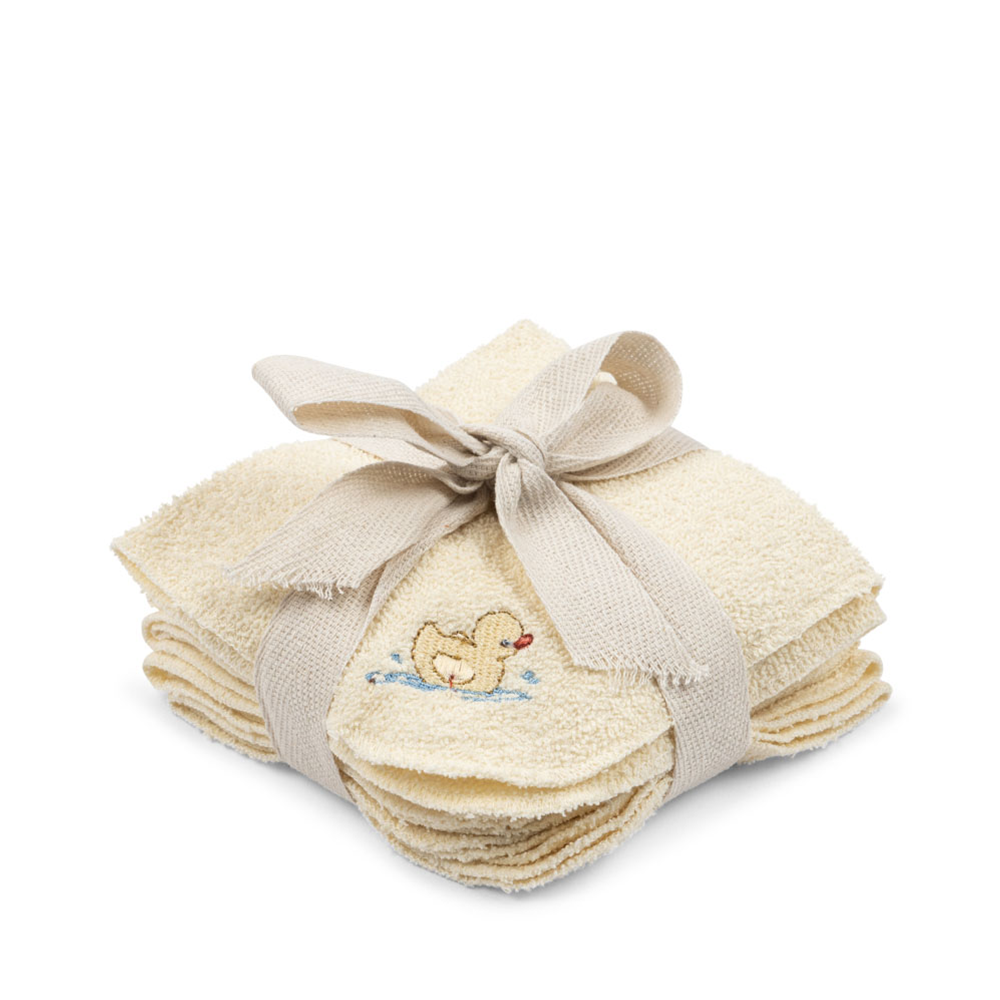 Weiches Waschlappenset 'Figo' mit süssen Entchenstickereien von Fanga Fontana.
