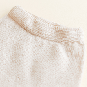 Die süsse, nahtlose Hose von Hvid ist in einem Stück gestrickt. Keine Vorder- und Rückseite, keine Nähte, was für Babys sehr angenehm zu tragen ist. Für zusätzlichen Komfort an der Taille wird ein elastischer Faden mit der Wolle zusammengestrickt. Die Spannung ist weicher als bei einem normalen Bund. Der untere Schritt sorgt dafür, dass genügend Platz für die Windel vorhanden ist. Kleine Maschendetails in der Hose machen die Form der Hose aus, da keine Vorder- und Rückseite zusammengenäht sind. Hergestellt aus 100% Merinowolle. Die Babyhose besitzt eine grosszügige Passform und passt meist länger als 3 Monate. Am Anfang kann sie beim Tragen hochgekrempelt werden.