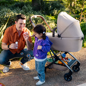 Der Joolz Aer2 in Sandy Taupekann mit dieser Babywanne bereits ab Neugeboren genutzt werden.
