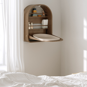 Mit dem eleganten Wandwickeltisch 'Kai' in Smoked Oak von Kas Kopenhagen schaffst du einen platzsparenden, aber trotzdem gemütlichen Ort, um dein Kleines zu wickeln. Der Wickeltisch kann in jeder beliebigen Höhe angebracht werden und bietet dir genügend Platz, um dein Baby zu wickeln und zu pflegen. Die 2 integrierten Regalböden sind perfekt für Pflegeutensilien, Windeln, Kleidung und sogar kleine Spielsachen oder Bücher. So ist alles immer griffbereit und trotzdem ordentlich verstaut. Das minimalistische, skandinavische Design fügt sich nahtlos in jeden Einrichtungsstil ein. Wenn du den Wickeltisch gerade nicht brauchst, kann du ihn einfach hochklappen.