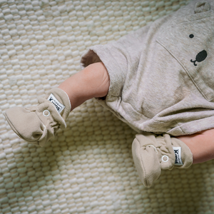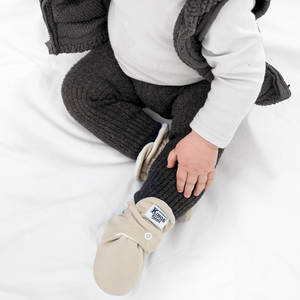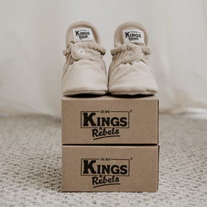 Die süssen Booties für Babys 'Gamuza' von Kings & Rebels sind die perfekten Begleiter für die ersten Monate, denn das weiche Fleecefutter sorgt dafür, dass Babyfüsschen wohlig warmbleiben. Die Schühchen passen sich an die individuelle Form des Fusses an, damit die Entwicklung in keinster Weise eingeschränkt wird. Ein praktischer Druckknopfverschluss erleichtert das anziehen auch bei strampelnden Beinchen und der Gummizug, der komplett um die Ferse verläuft und über dem Knöchel sitzt, verhindert auch bei sehr aktiven Babys ein Verrutschen. Um die ersten Laufversuche zu vereinfachen, besitzen die Schühchen ab der Grösse 12 Monate eine Anti-Rutsch-Sohle.Die Schühchen werden in liebevoller Handarbeit im eigenen Familienbetrieb gefertigt.