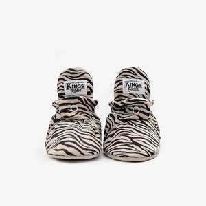Die süssen Booties für Babys 'Gamuza' von Kings & Rebels sind die perfekten Begleiter für die ersten Monate, denn das weiche Fleecefutter sorgt dafür, dass Babyfüsschen wohlig warmbleiben. Die Schühchen passen sich an die individuelle Form des Fusses an, damit die Entwicklung in keinster Weise eingeschränkt wird. Ein praktischer Druckknopfverschluss erleichtert das anziehen auch bei strampelnden Beinchen und der Gummizug, der komplett um die Ferse verläuft und über dem Knöchel sitzt, verhindert auch bei sehr aktiven Babys ein Verrutschen. Um die ersten Laufversuche zu vereinfachen, besitzen die Schühchen ab der Grösse 12 Monate eine Anti-Rutsch-Sohle. Die Schühchen werden in liebevoller Handarbeit im eigenen Familienbetrieb gefertigt.