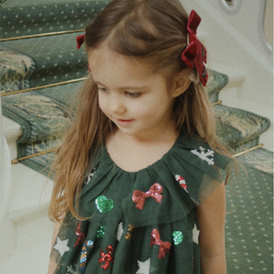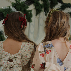 Die entzückende Haarklammern in Form von Schleifen aus weichem Samt von Konges Sløjd bändigen kleine Strähnchen.