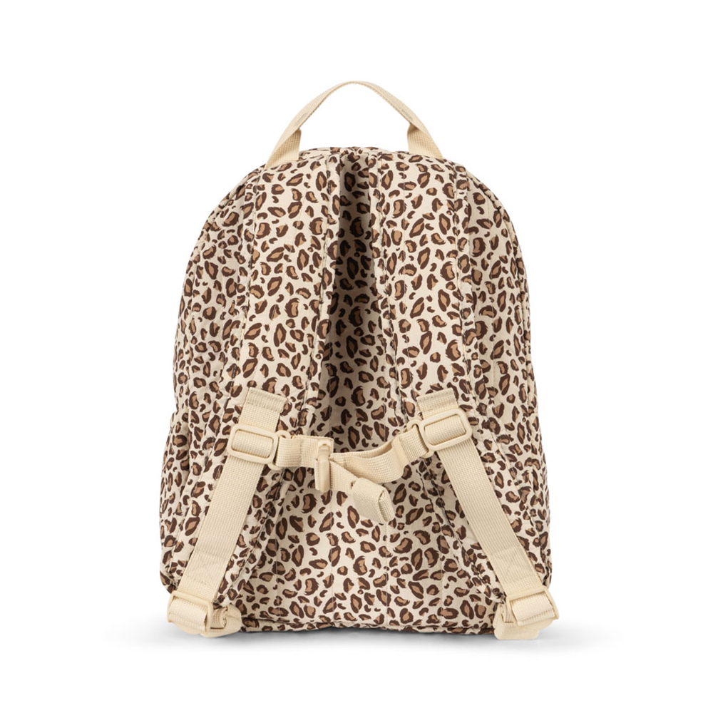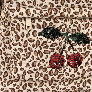 Geräumiger Kinderrucksack 'Juno Sequin' im Leolook mit süssen Kirschen aus Pailletten von der dänischen Marke Konges Sløjd- der ideale Begleiter für ein kleine und grosse Abenteuer.