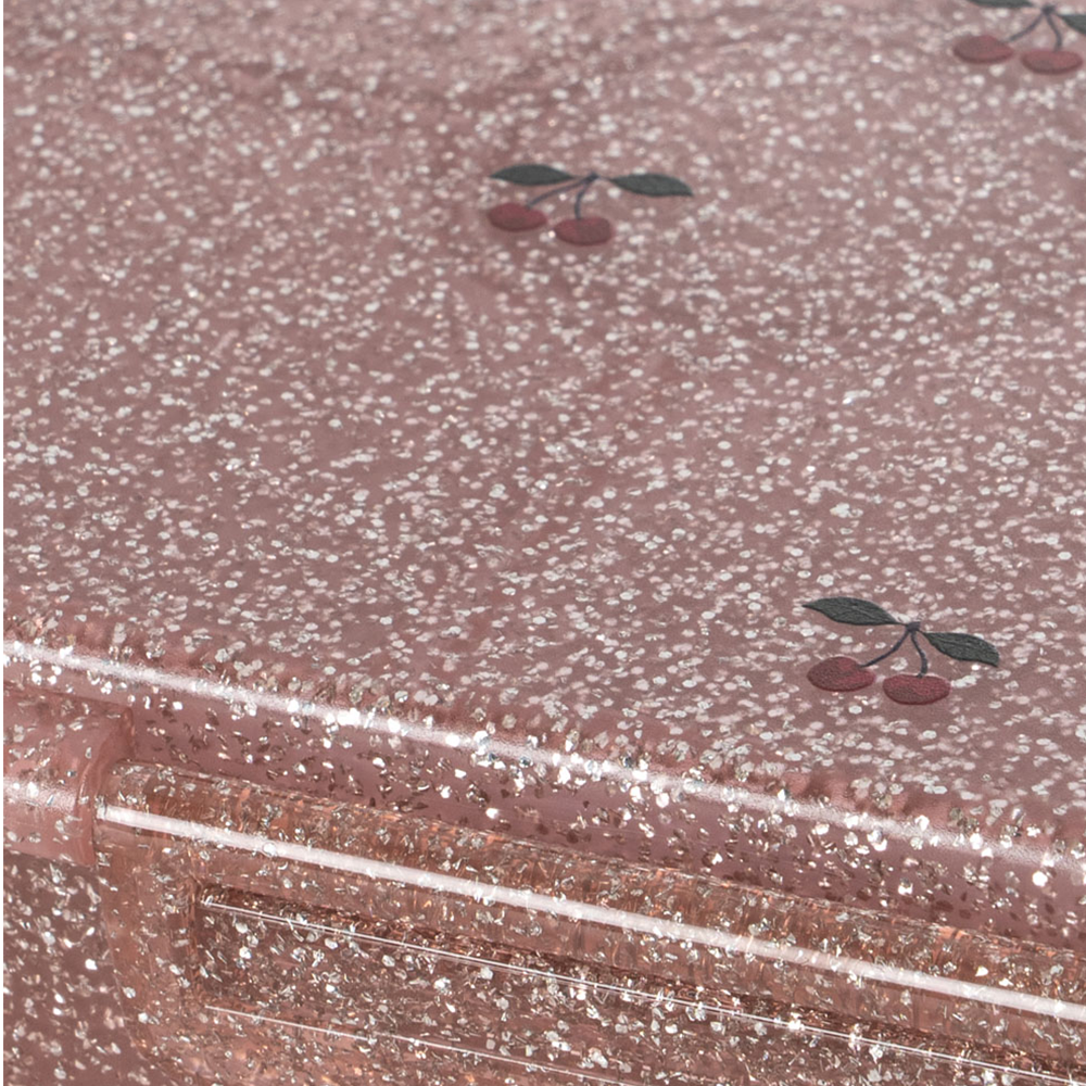 Auslaufsichere Brotdose 'Bento' mit verschiedenen Unterteilungen im glitzernden Kirschprint von Konges Sløjd.