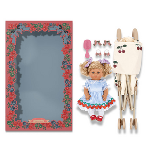 Das schöne Puppen-Set "All I Wish For" von Konges Sløjd ist das perfekte Geschenk für kleine Puppeneltern. Das Geschenkset enthält die niedliche Puppe Delphine, einen zusammenklappbaren Puppen-Buggy mit Kirschprint, eine Flasche und eine Bürste mit Haarklammern. Die Puppe Delphine trägt ein hübsches kariertes Kleidchen, Söckchen, Schuhe und zwei grosse Schleifen im Haar. Das Set wird in einer liebevoll gestalteten Verpackung geliefert, was sie zum perfekten Geschenk macht.