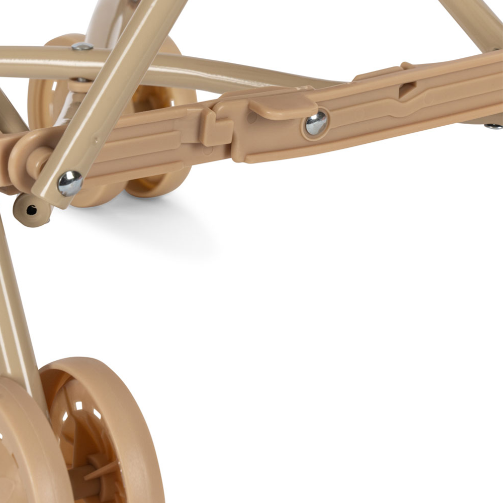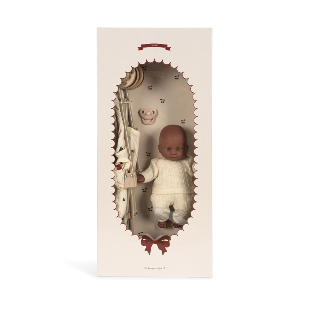 Die süsse Puppe von Konges Sløjd mit hübschem Outfit und einem Schnuller freut sich auf Spaziergänge in ihrem Buggy. In der grossen Tasche des Buggys, die an Griffen befestigt ist, können Spielsachen, Puppenaccessoires oder eine Trinkflasche verstaut werden. Der Buggy lässt sich einfach und schnell zusammenklappen. Das Set wird in einer hübschen Box geliefert - was es zum perfekte Geschenk macht.