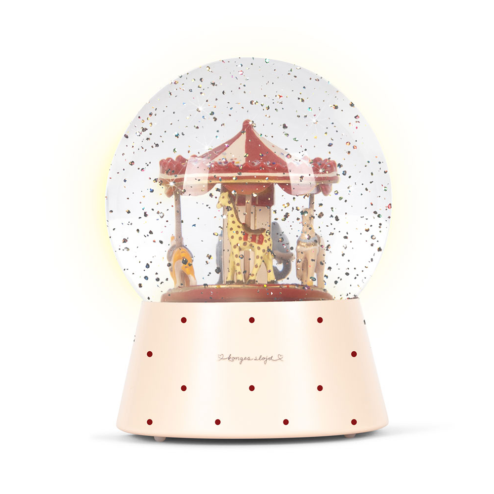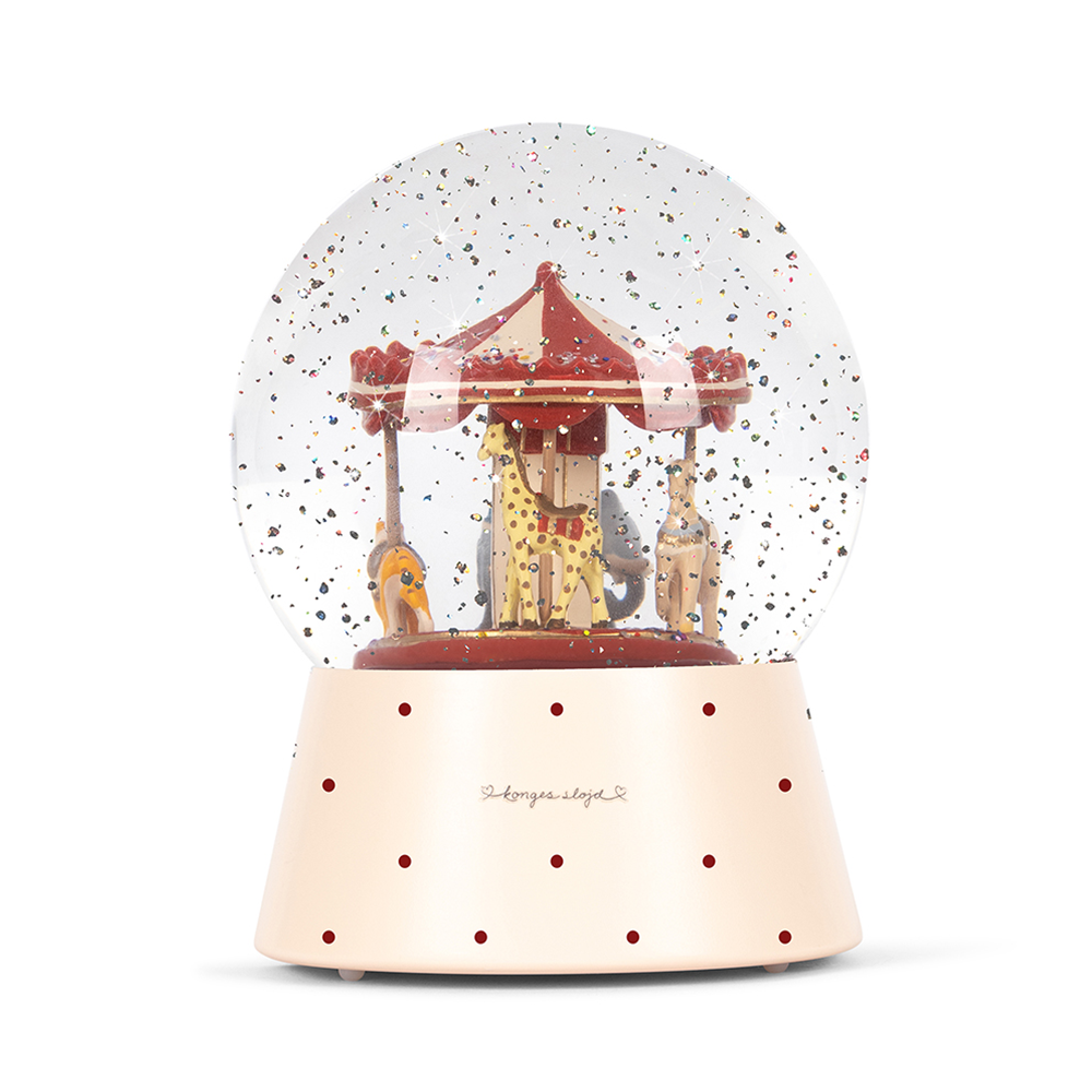 Diese wunderschönen Schneekugeln von Konges Sløjd verzaubert jedes Kinderzimmer. Im Inneren findest du eine detailreiche Glitzerwelt mit einem Karussell. Die Kugel besitzt ein Licht, das angezündet werden kann und den Raum in ein sanftes Licht hüllt. So eignet sie sich auch ideal als Nachtlicht oder als Lämpchen.