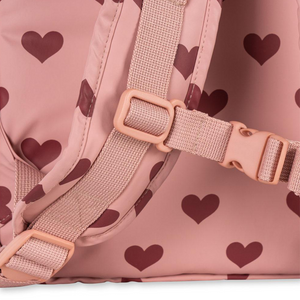 Der wasserabweisende Rucksack 'Rainy'mit süssem Herzchenmuster von Konges Sløjd begleitet dein Kind mit bei all seinen Abenteuern - auch bei Regenwetter. Der geräumige Rucksack ist leicht, besitzt ergonomische, verstellbare Träger und einen Brustgurtfür einen optimalen Sitz und um den Rücken zu unterstützen. Die Trinkflasche deines Kindes findet in der Flaschentasche Platz.