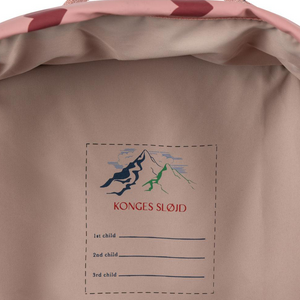 Mit dem wasserabweisenden Rucksack 'Rainy' in Rosa mit Herzchenmuster von der dänischen Marke Konges Sløjdbleibt der Znüni auch bei Regenwetter trocken.