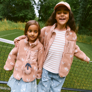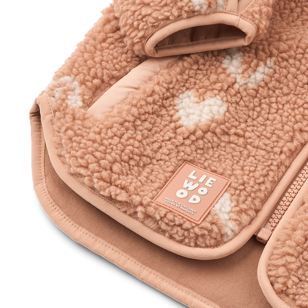 Die ultraweiche Sherpa-Jacke 'Nolan' in Rosa mit süssem Muster von Liewoodist ein Must-have für die kühlere Jahreszeit.