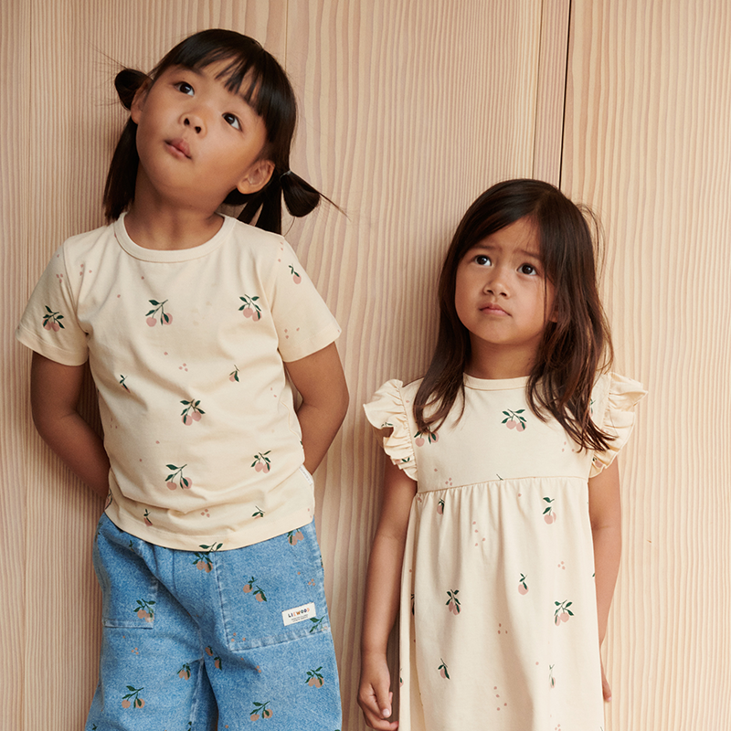 Bequeme Jeans 'Cesar' mit niedlichem Pfirsichprint aus Bio-Baumwolle von der dänischen Marke Liewood.