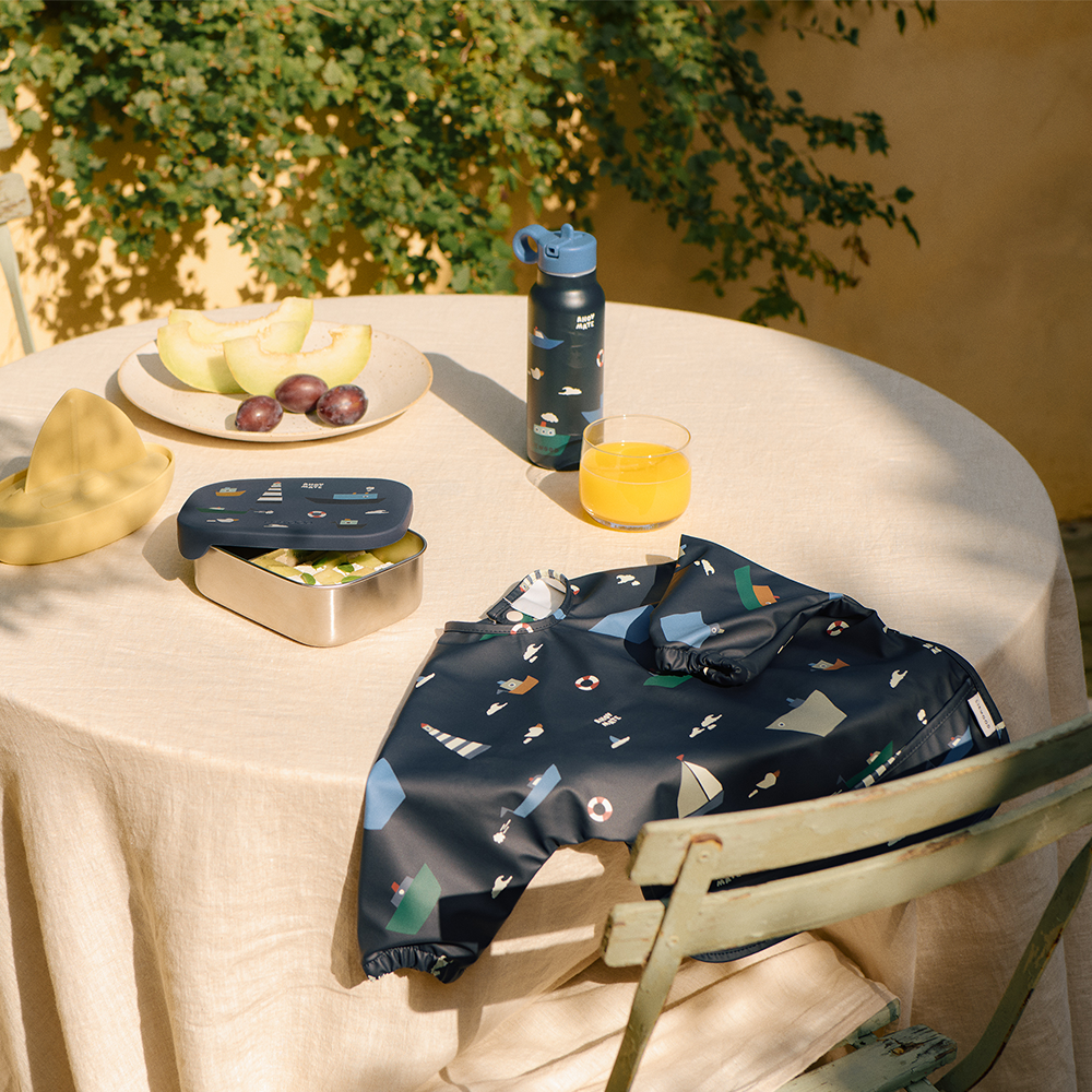 Das Ärmellätzchen 'Merle' von Liewood mit verspieltem Segelbootmuster ist perfekt, um die Kleidung deines Kindes vor kleinen und grossen Missgeschicken zu schützen.