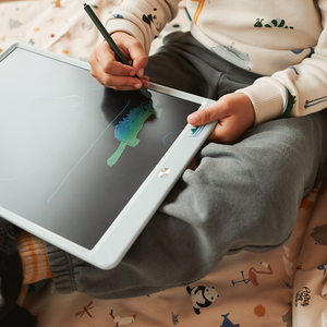 Mit dem grossen LCD-Zeichentablet 'Zora' in Blau mit Krokodilmotiv von Liewoodsind der Kreativität deines Kindes keine Grenzen gesetzt.