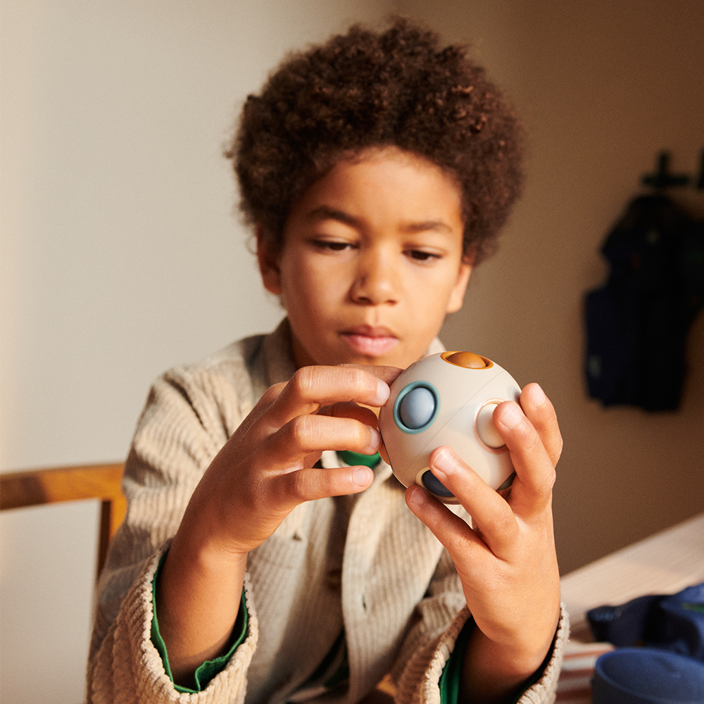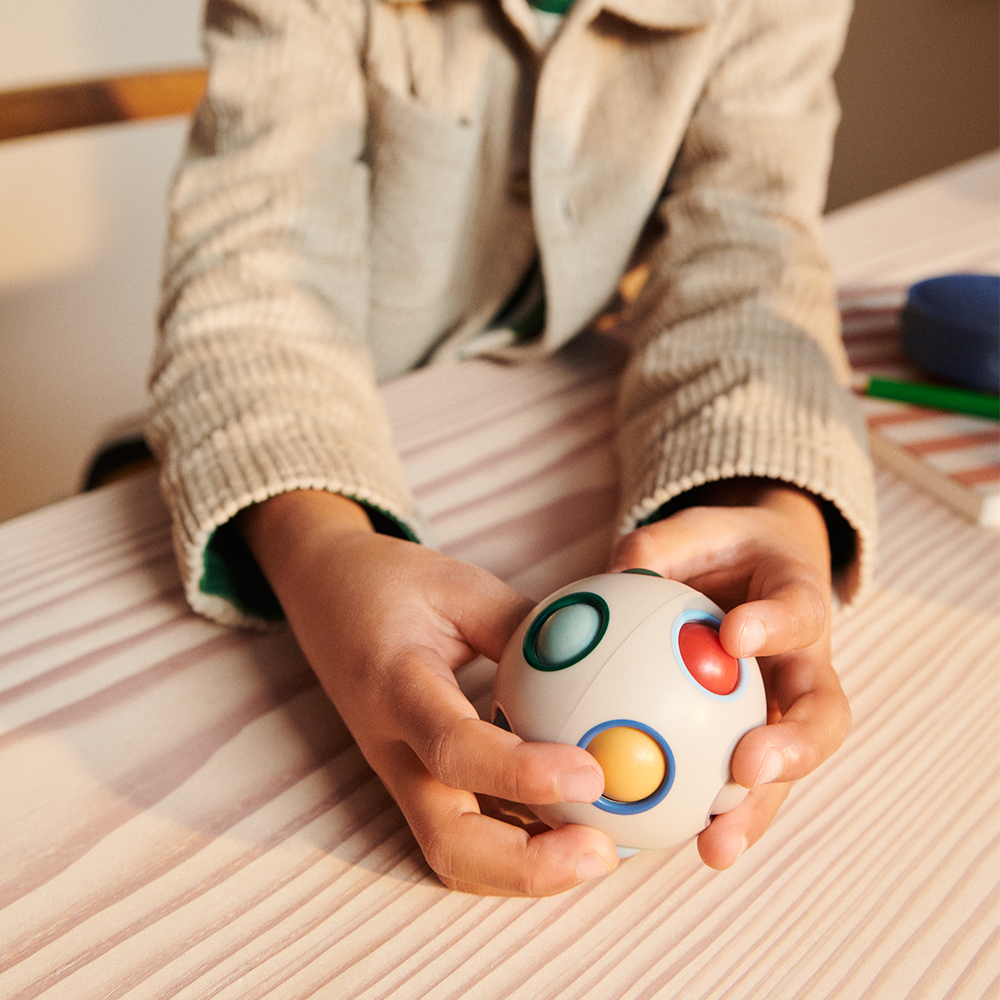 Der Puzzle-Würfel 'Soline' von Liewood ist ein interaktives Spielzeug, das Geschick und Konzentration erfordert.