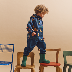 Regenset mit Jacke und Hose 'Pedia' mit verspielten Planetenmuster von Liewood hält kleine Abenteurerinnen und Abenteurer trocken