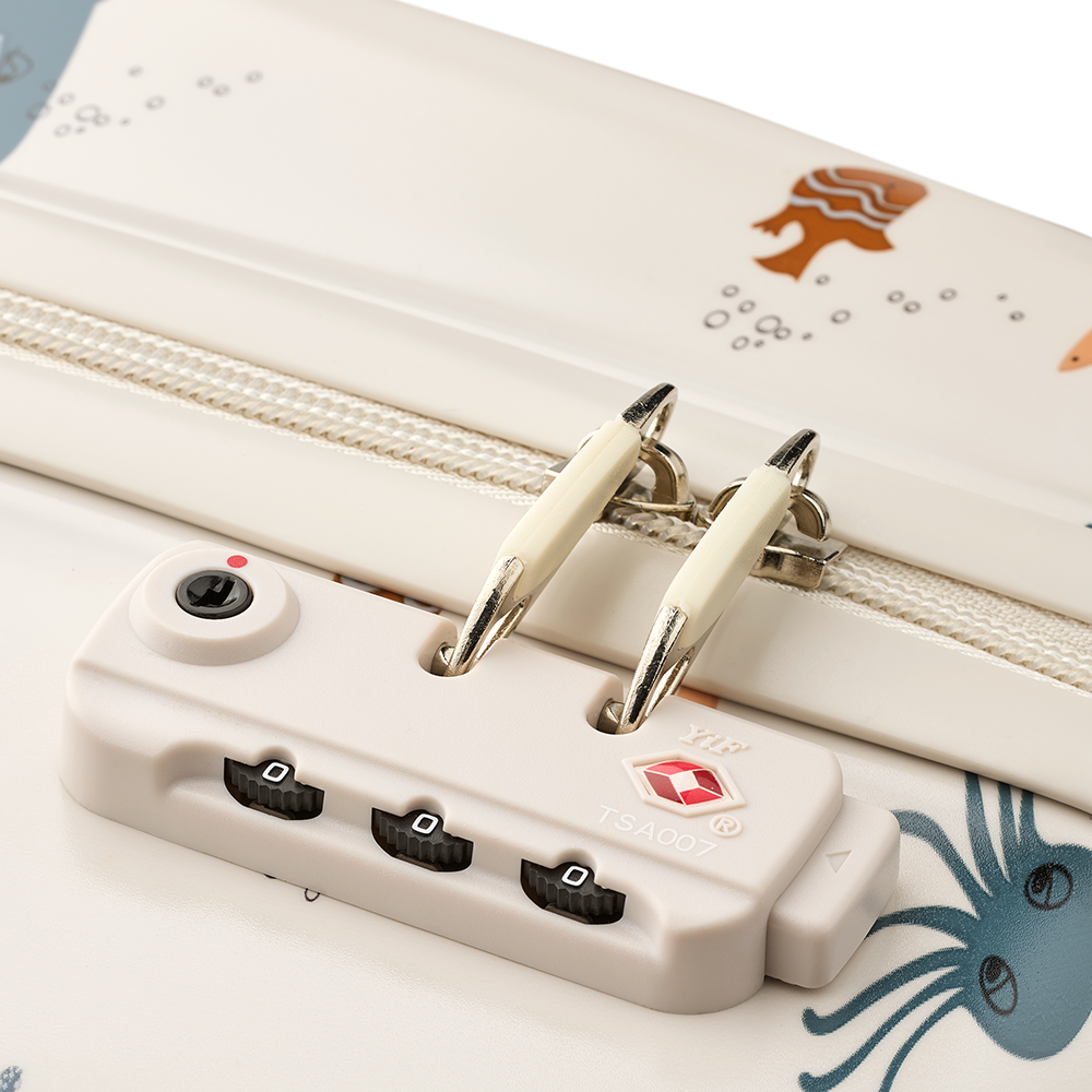 Die nächste Reise steht an und dein Kleines kann mit dem liebevoll gestalteten Hartschalenkoffer von Liewood, wie die Grossen mit dabei sein. Der Koffer mit vier Rädern eignet sich ideal als Handgepäck für euer nächstes Reiseabenteuer und kann dank seines leichten Gewichts, selbständig von deinem Kind gezogen werden. Er ist mit einem TSA LOCK® und einem seitlichen Griff ausgestattet. Der Teleskopgriff ist verlängerbar und kann auf die Grösse deines Kindes angepasst werden. Das Innere des Reisekoffers ist mit Stoff ausgekleidet und besteht aus einem grossen Fach mit Bändern und einem kleineren mit Reissverschluss und Netztasche.
