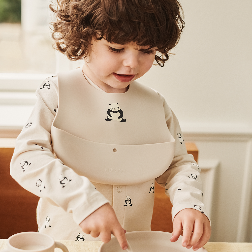 Praktisches Silikon Lätzchen'Ember' mit verspieltem Pandamuster von Liewood.