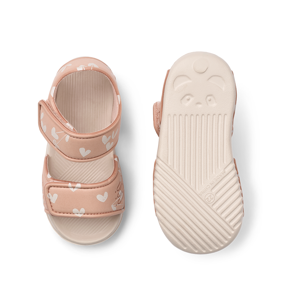 Sportliche Sandalen 'Blumer' in rosa mit süssem Herzchenmuster von der dänischen Marke Liewood.