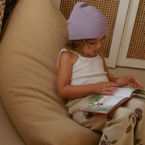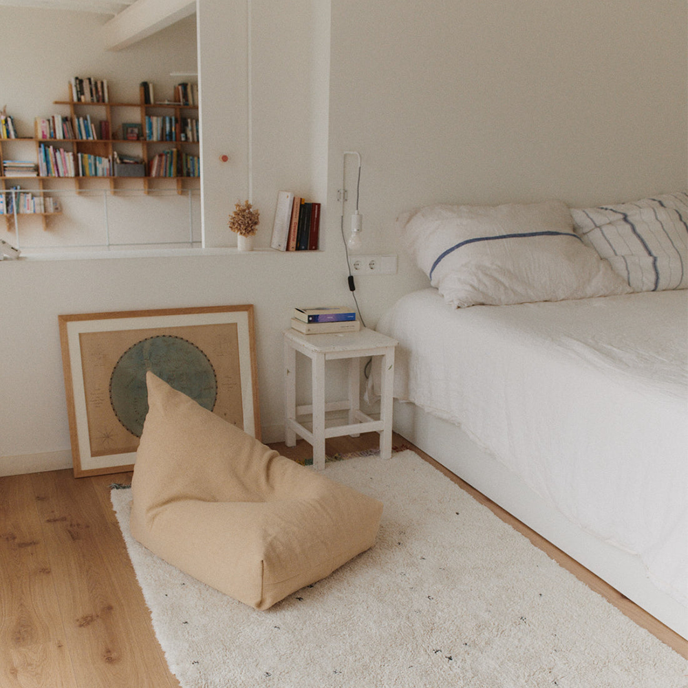 Der handgefertigte Sitzsack 'Cleo' für Kinder ist nicht von Lorena Canals ist ein gemütlicher Ort zum Entspannen, Lesen und Träumen.