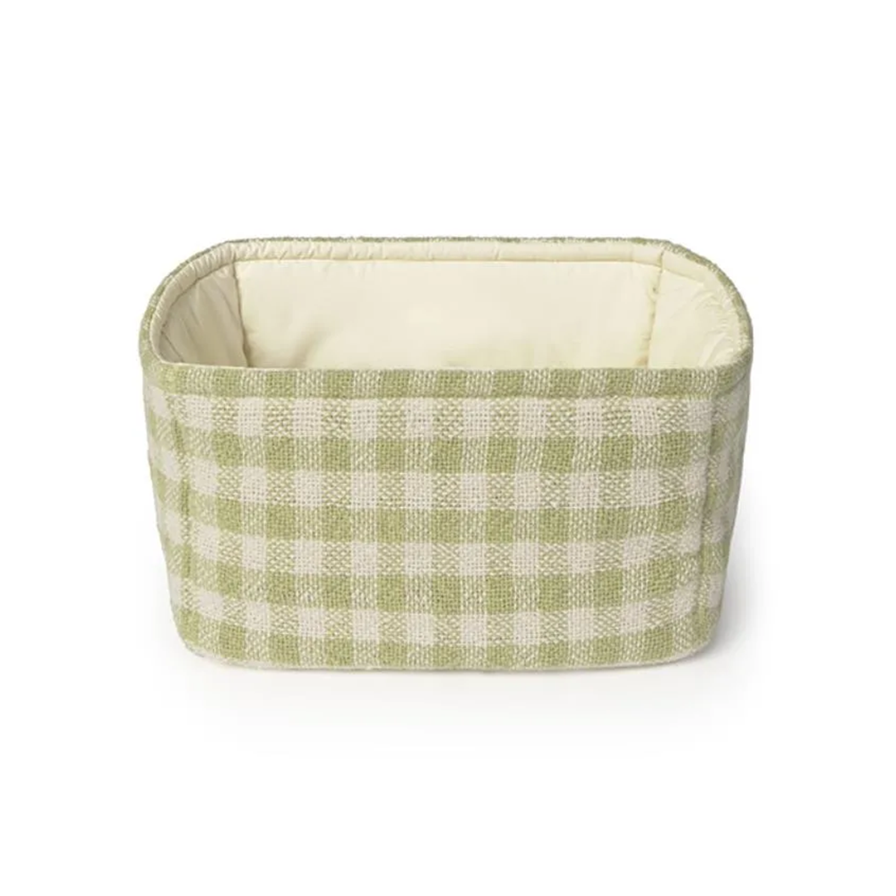 In dem gesteppten Stoffkorb'Vichy in Matcha mit hübschem Karomuster von Lorena Canals finden allerlei Dinge Platz