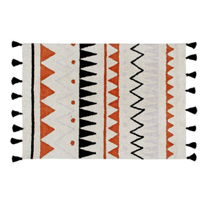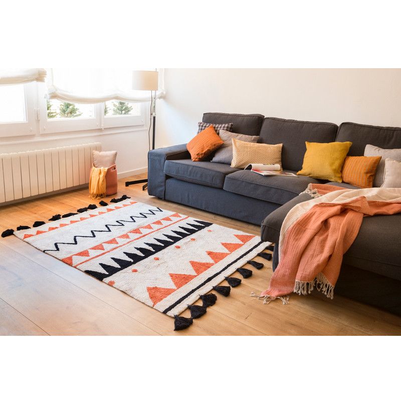 Der wunderschöner Baumwollteppich von Lorena Canals hat tolles Design was ein indisches Muster erinnert. Fröhlich aber doch in dezenten Farbkombinationen setzt dieser Teppich ein Highlight in jedem Zimmer.