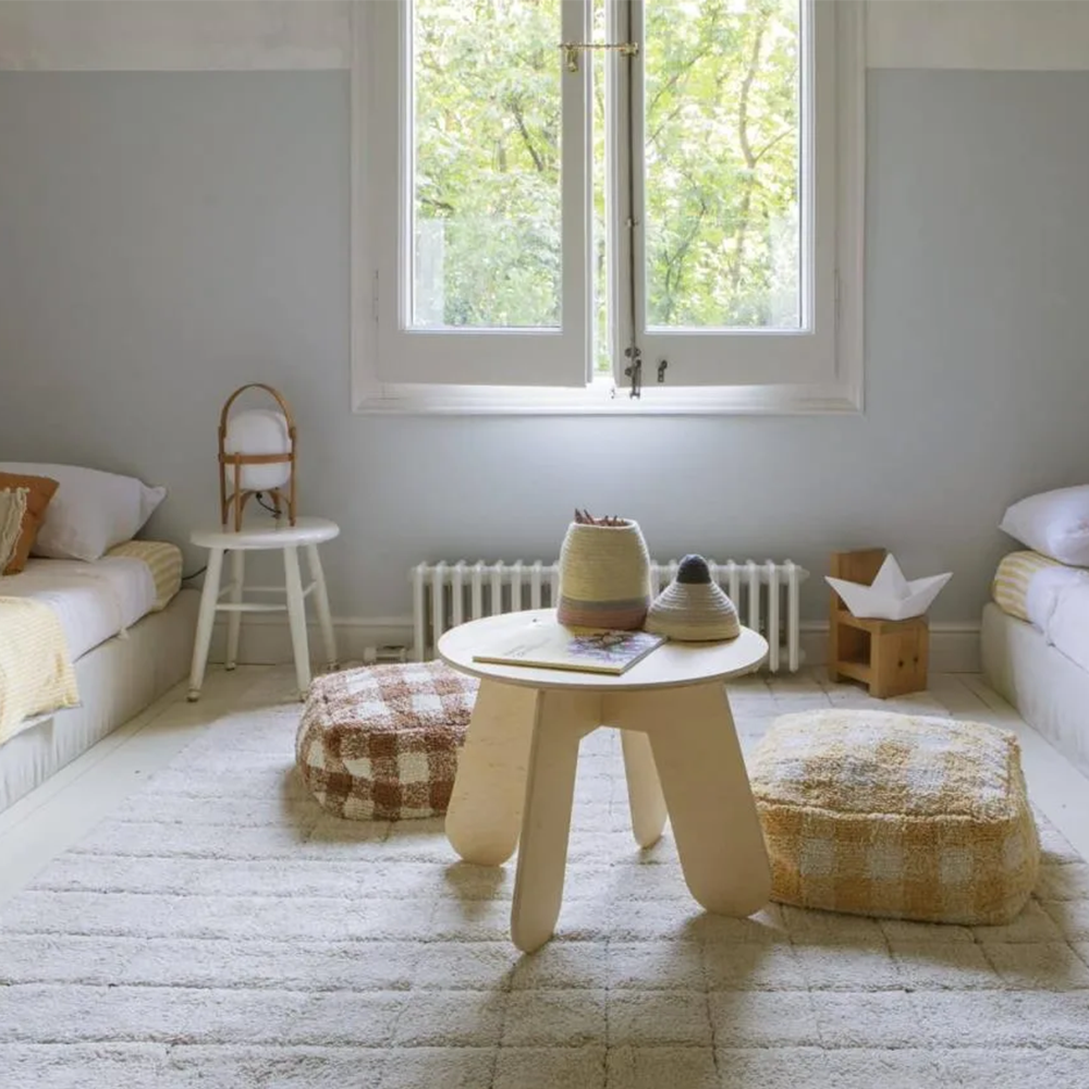 Mit dem waschbaren Baumwollteppich mit Schachbrettmuster mit sanften Streifen von Lorena Canals verleihst du dem Kinder- oder Spielzimmer einen sanften Farbakzent.