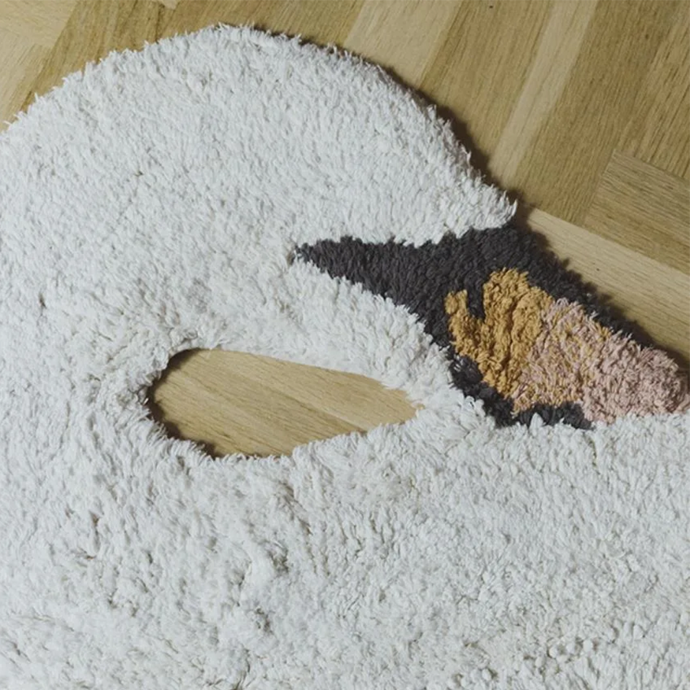 Der Teppich 'Swan' in Form eines majestätischen Schwanes von Lorena Canals ist nicht nur gemütlich, um darauf zu spielen, er ist auch ein lieber Spielkamerad.