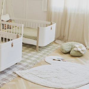 Der Schwanenteppich 'Swan' von Lorena Canals, aus natürlicher Baumwolle bringt eine märchenhafte Magie ins Kinderzimmer. Er verfügt über strukturierte Details, Fransen, die Schwanenflügeln ähneln, und eine weiche Chenille-Struktur, die Federn und Wasser nachempfunden ist. Der kurze Flor macht ihn für Babys und grössere Kinder sicher zum Spielen. Du musst dir auch keine Sorgen wegen Flecken machen, der Teppich kann in der Waschmaschine gewaschen werden. Bitte beachte dazu dieWasch- und Pflegeanleitungund das Waschetikett.