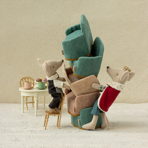 Der König Maus von Maileg ist bereit für Spielspass im Schloss und königliche Abenteuer. Als Papa Maus trägt er sein majestätisches Gewandund eine goldene Krone, das jedes Rollenspiel in eine zauberhafte Märchenwelt verwandelt.