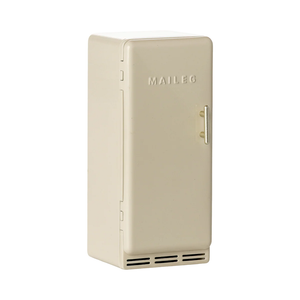 Der Kühlschrank im Vintage-Stil von Maileg ist das absolute Highlight in jeder Mäuseküche. Im Innern des Kühlschranks erwarten die Mäuse drei praktische Regaleinsätze, die gefüllt mit Käse, Wurst und Eiscreme sind.