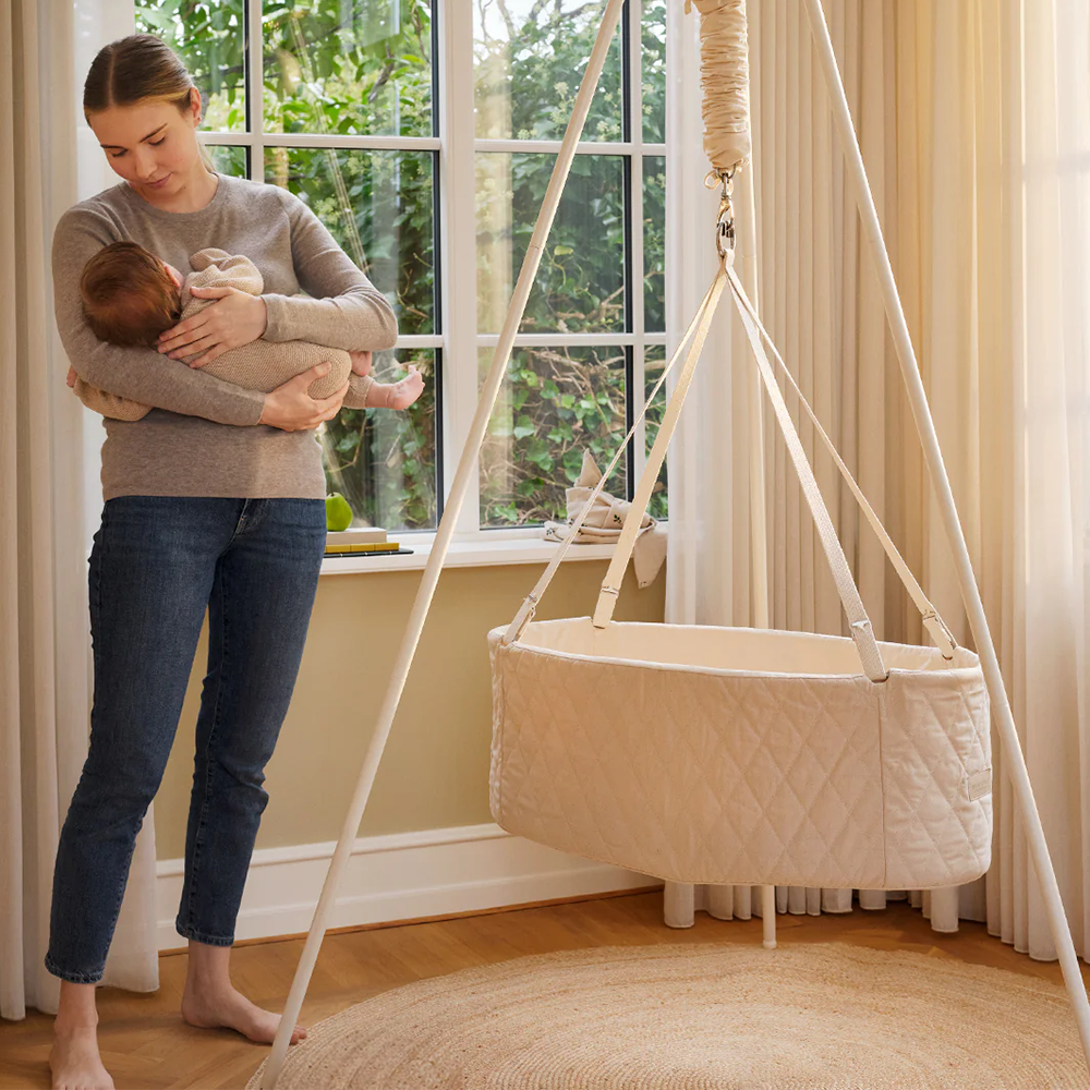 Schöpfe auch du wieder Kraft während deine beiden Babys gemütlich in der GOTS-zertifizierten Wiege geschaukelt werden.