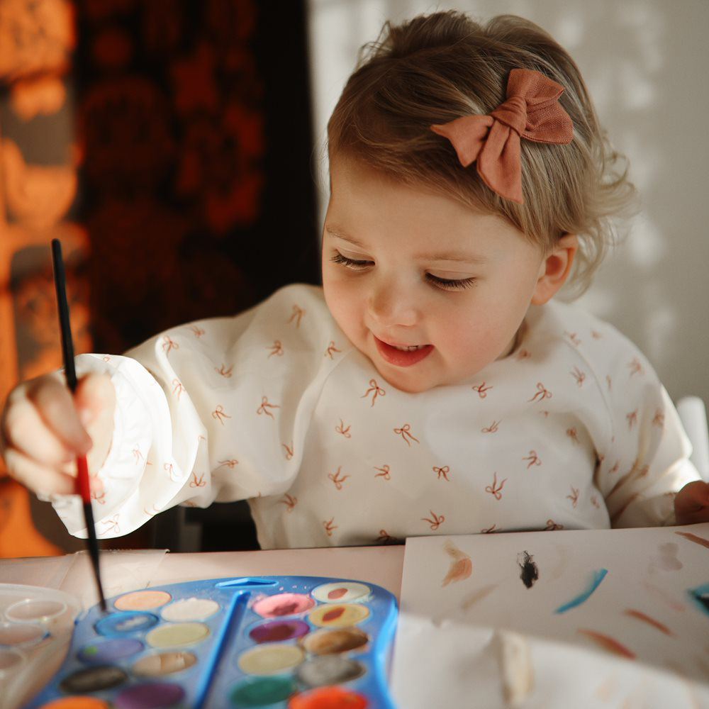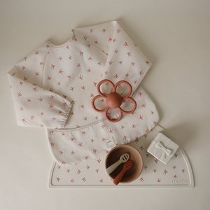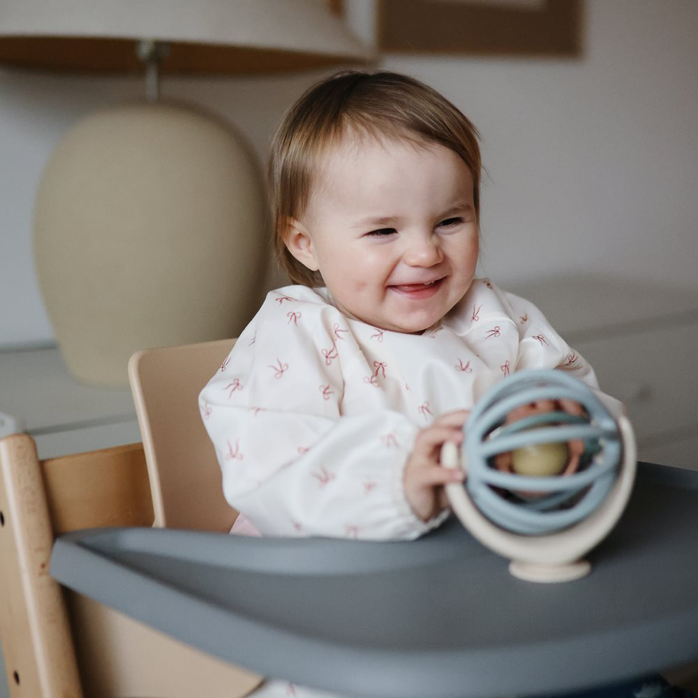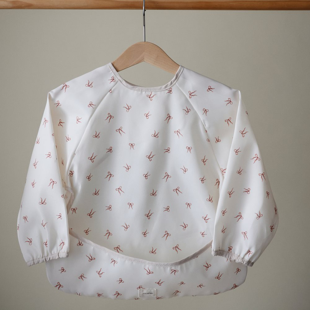 Das perfekte Ärmellätzchen 'Bows' von Mushie, um die Kleidung deines Kindes vor Flecken zu schützen.