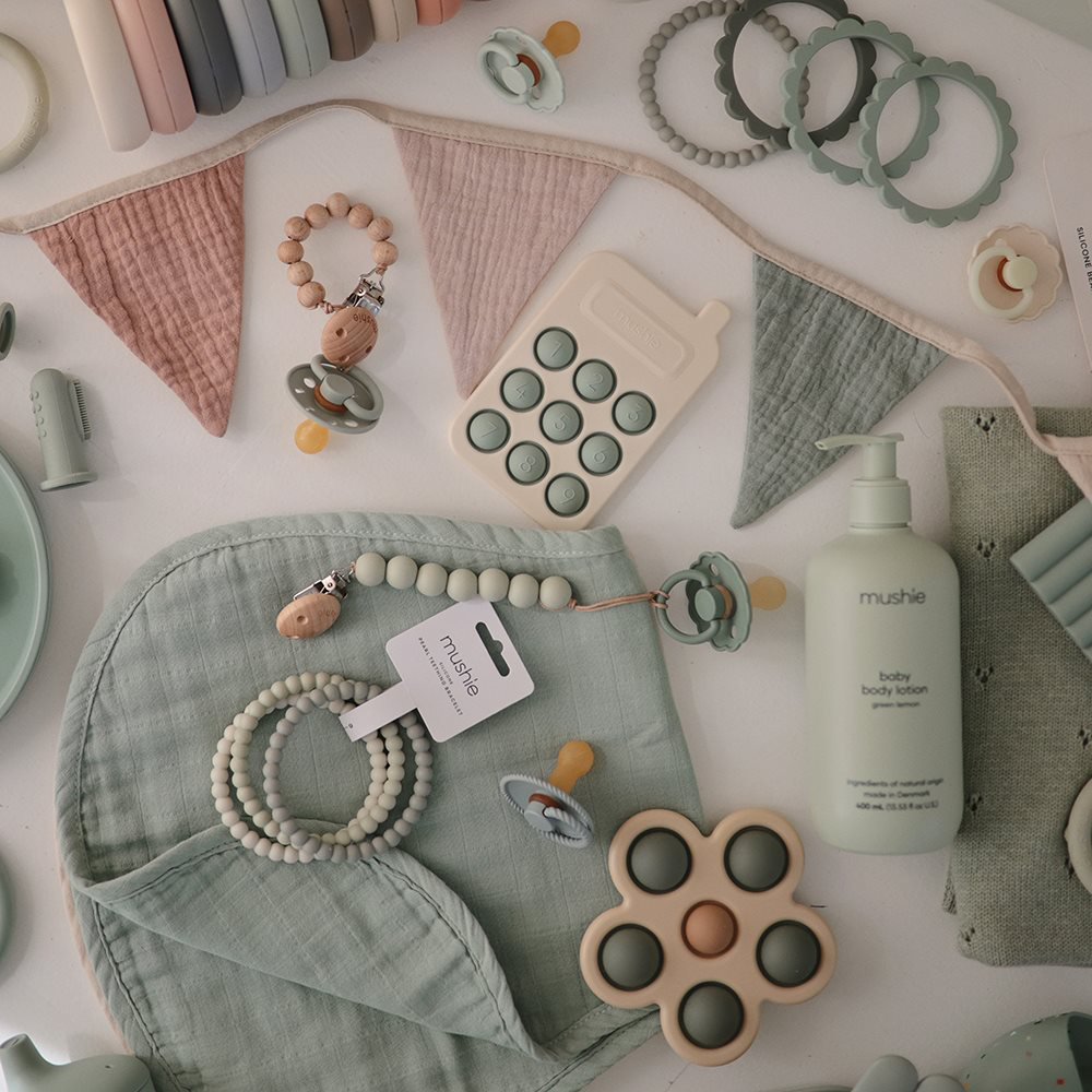 Tolles Regenbogen- Stapelspielzeug von Mushie.